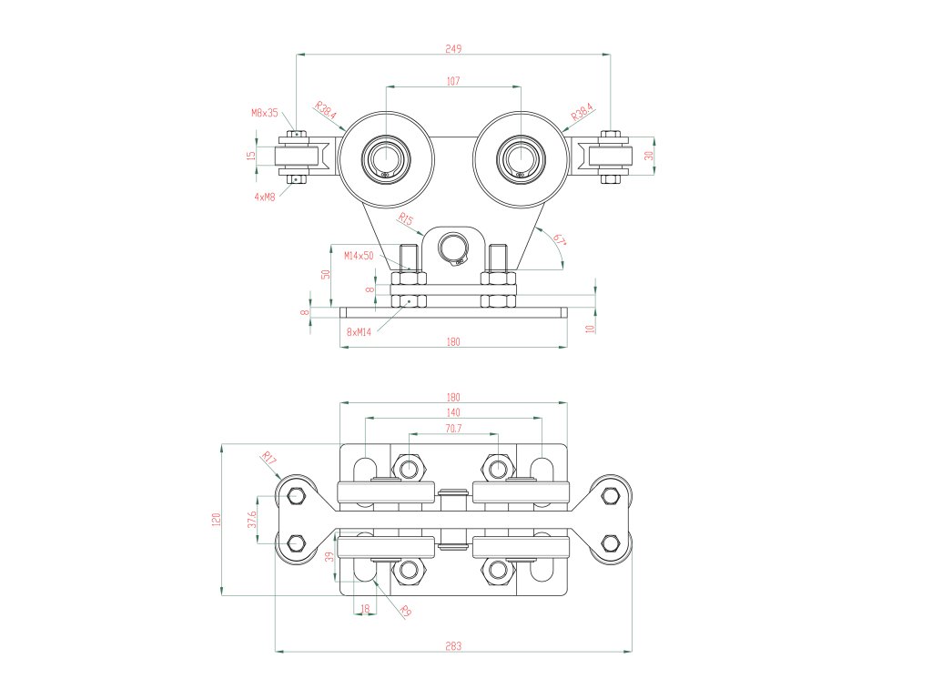 Vozík do 230 kg, nastaviteľný, profil 95 x 100 mm, pozink