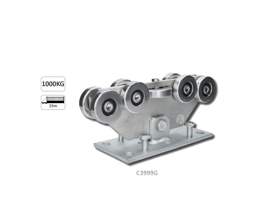 Samonosny systém vozíka od popredného talianského výrobcu Combi Arialdo. Povrchová úprava- pozink. Použitie pre posuvné brány. Kombinácia s kolajnicou C399G/Fe a C399G/Zn.