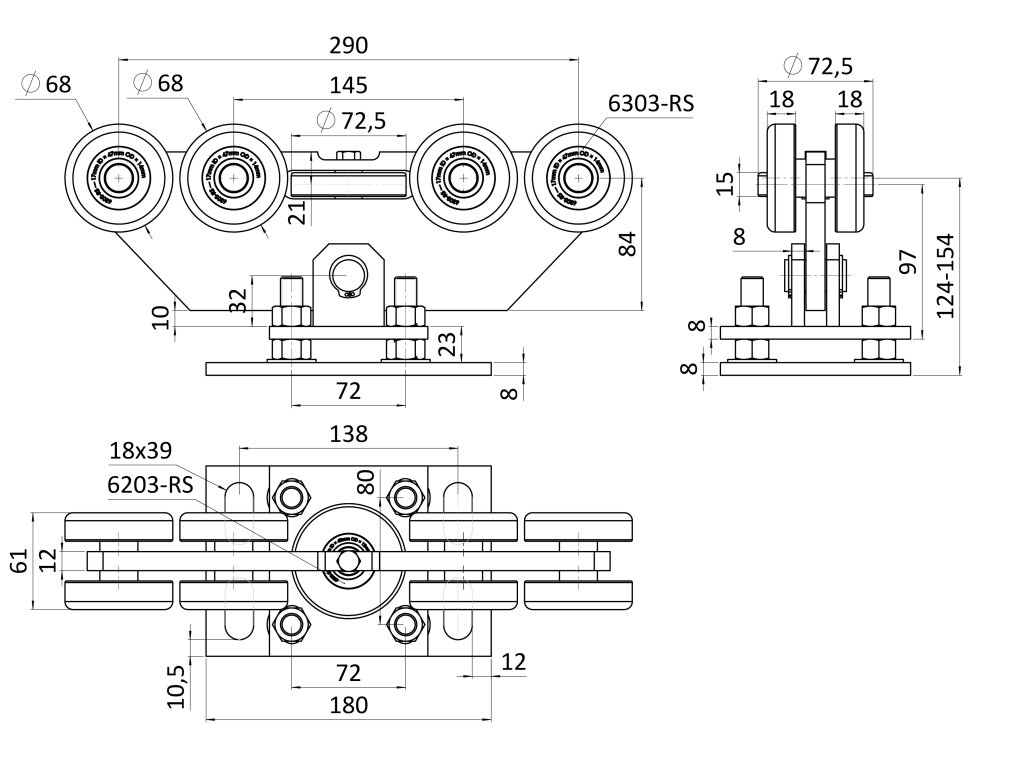 Vozík INTERMEDIO do 470 kg, nastaviteľný, profil 80 x 85 mm