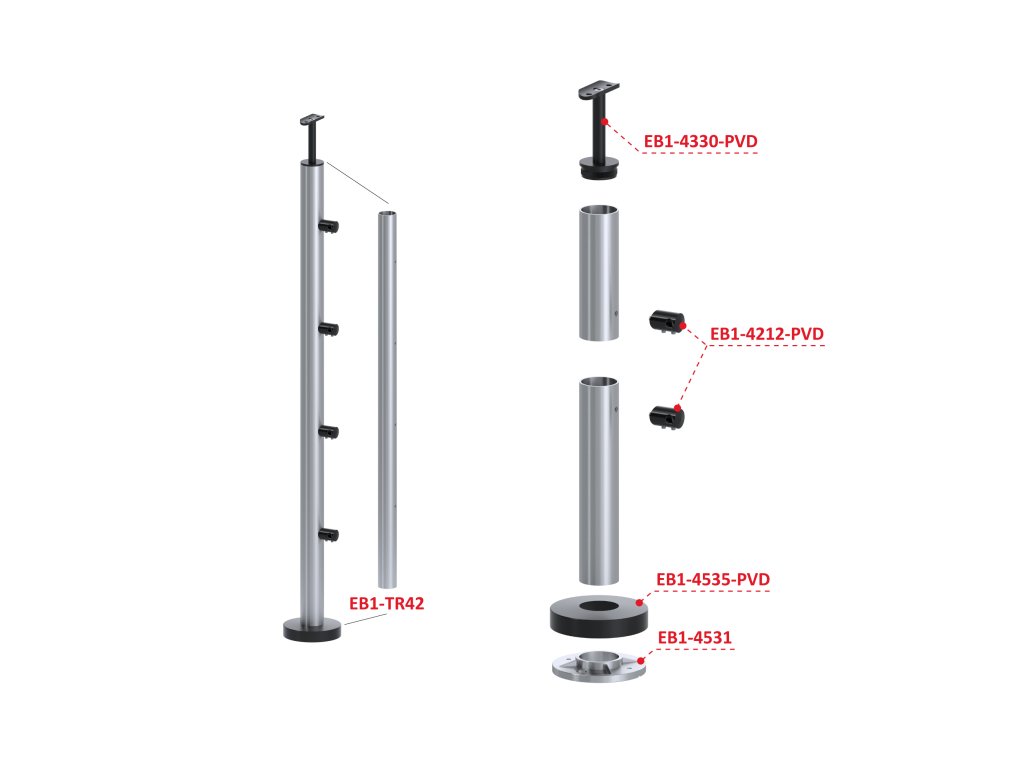 Nerezový stĺp, vrchné kotvenie, 4-radový, priechodný