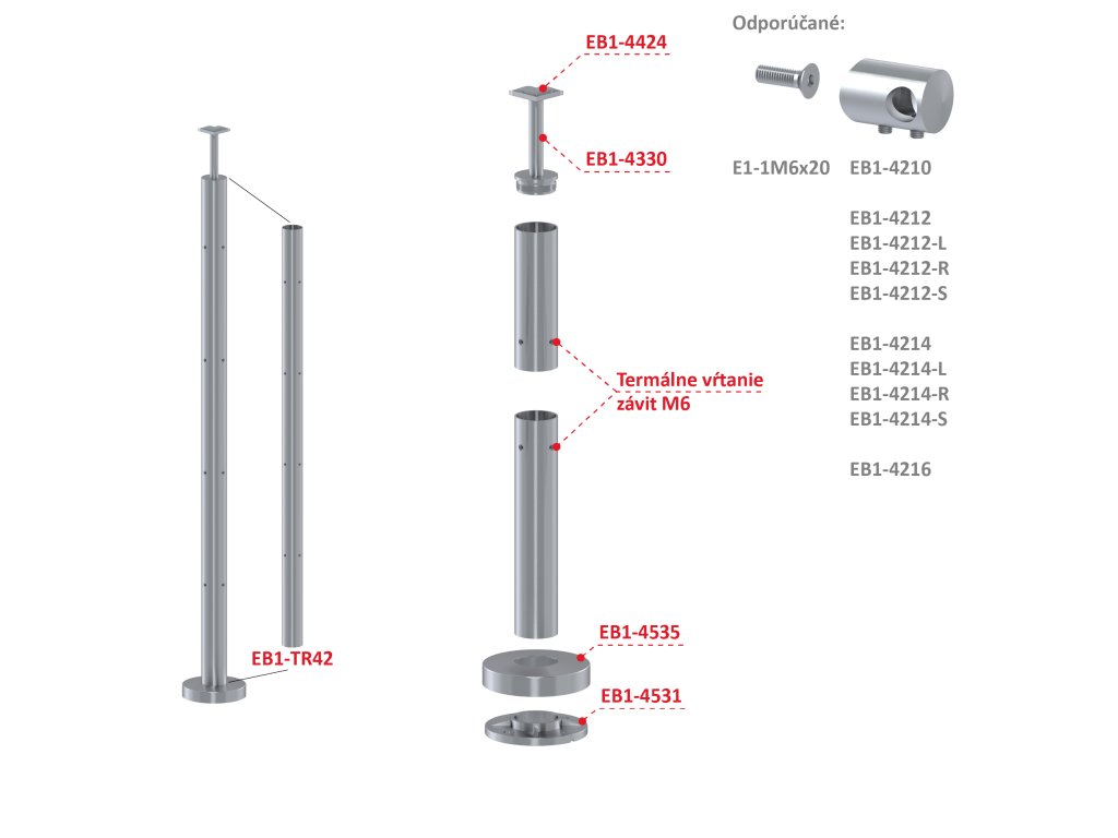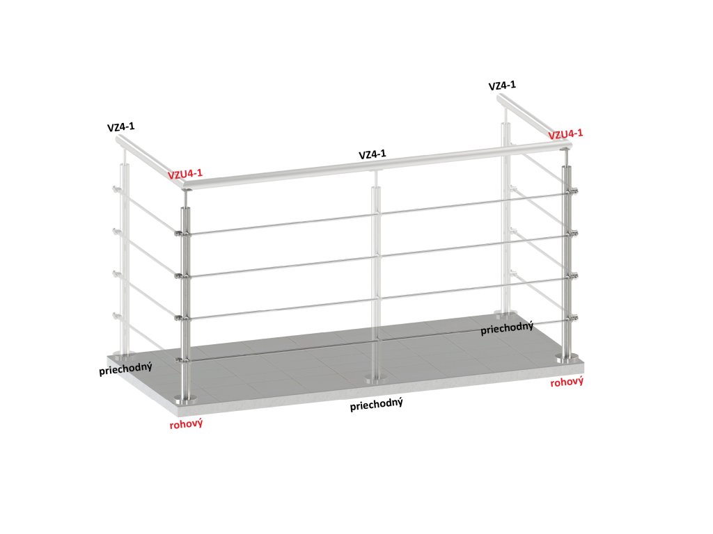 Nerezový stĺp, vrchné kotvenie, 4-radový, rohový: 90°