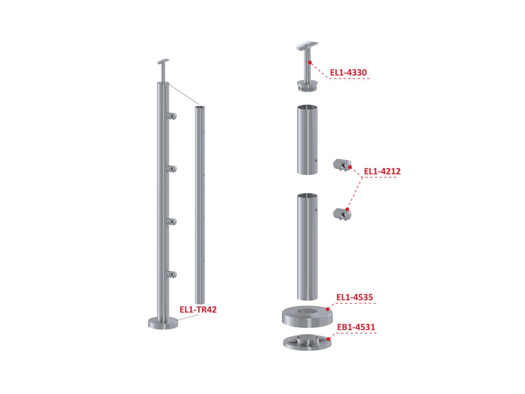 Nerezový stĺp, vrchné kotvenie, 4-radový priechodný