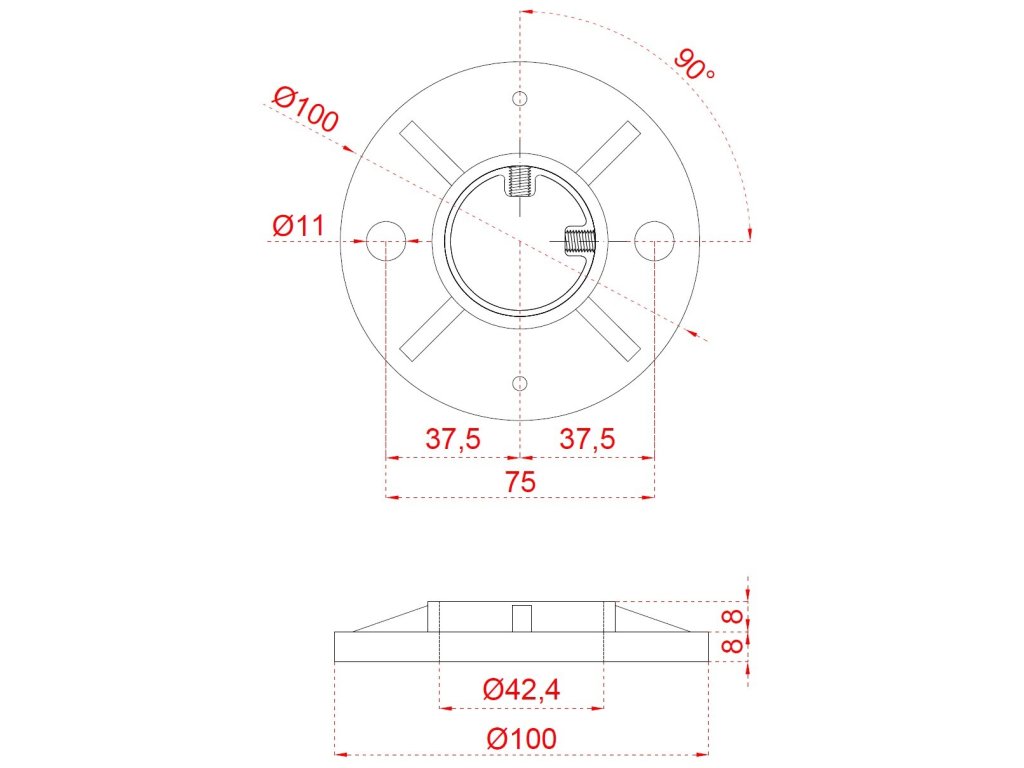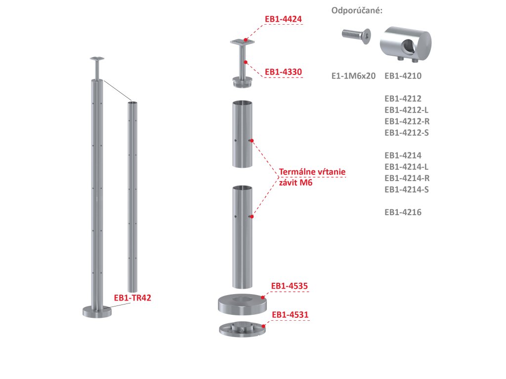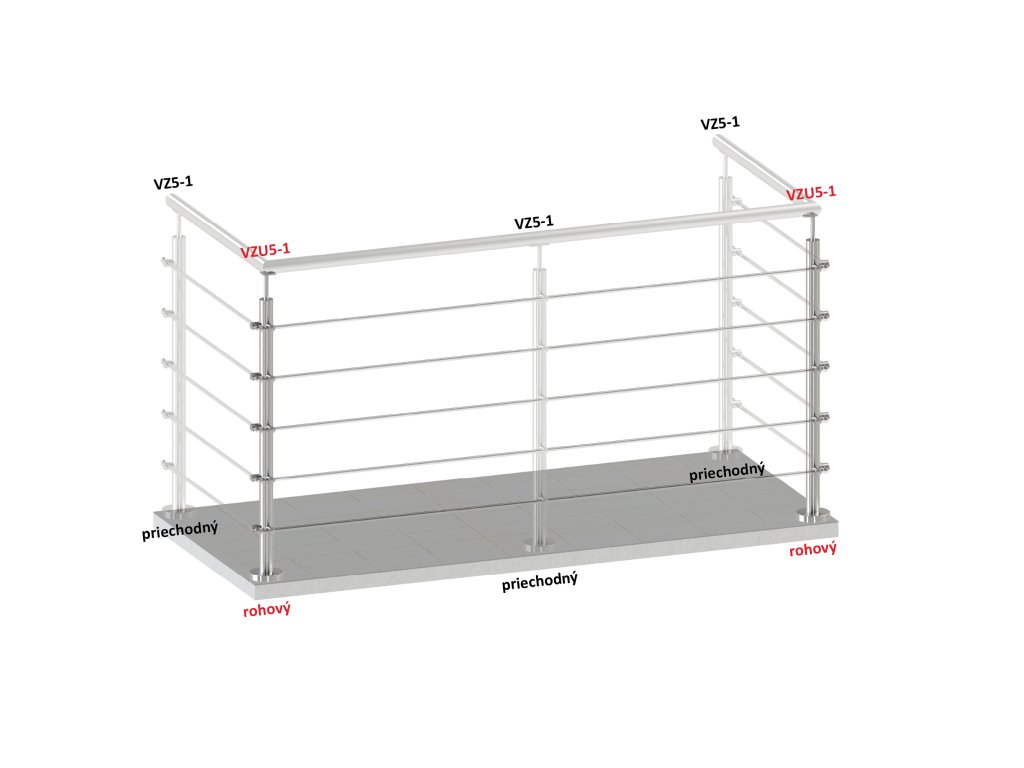 Nerezový stĺp, vrchné kotvenie, 5-radový, rohový: 90°