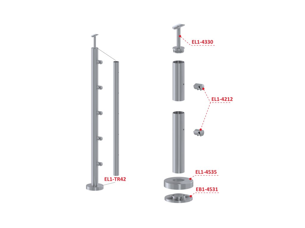 Nerezový stĺp, vrchné kotvenie, 5-radový priechodný