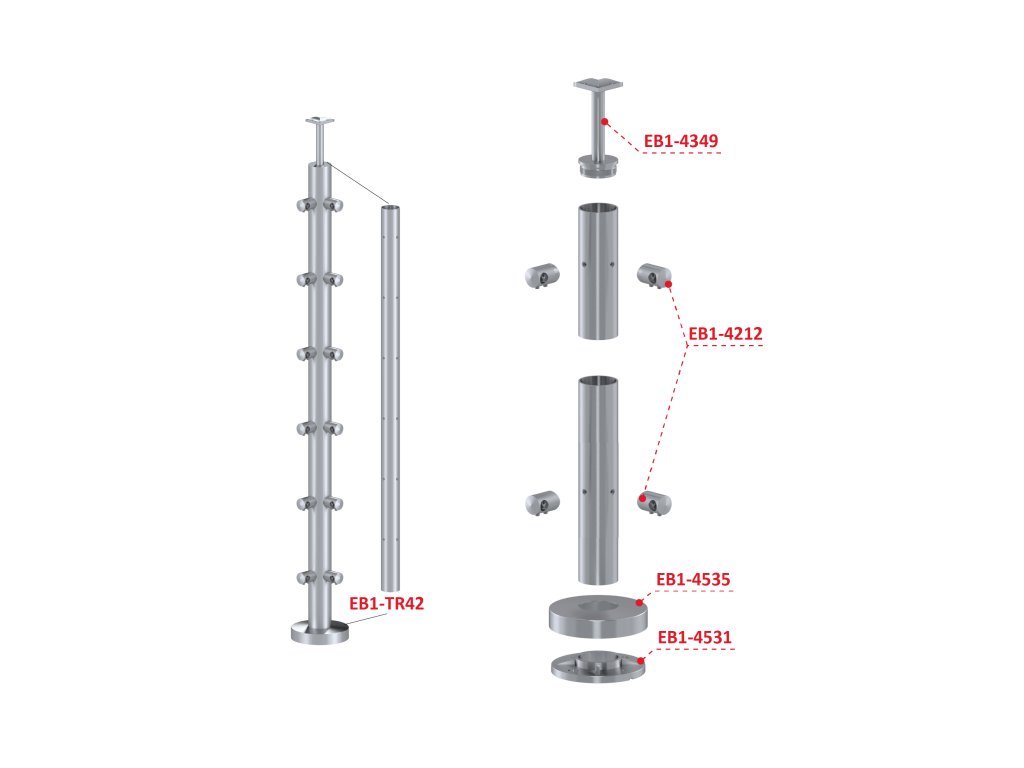 Nerezový stĺp, vrchné kotvenie, 6-radový, rohový: 90°