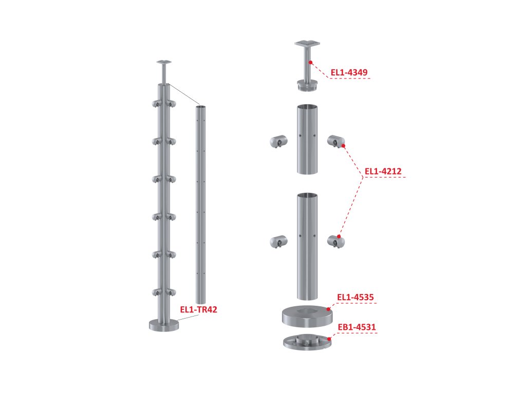 Nerezový stĺp, vrchné kotvenie, 6-radový rohový: 90°