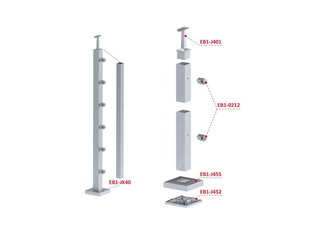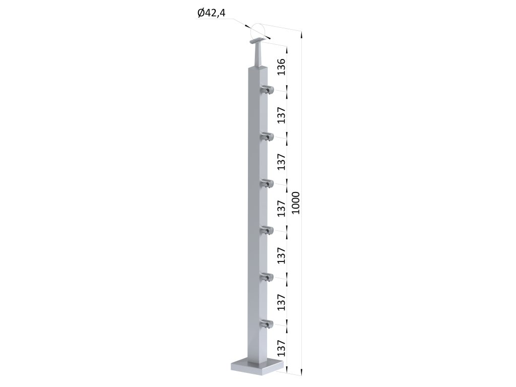Nerezový stĺp, vrchné kotvenie, 6-radový priechodný