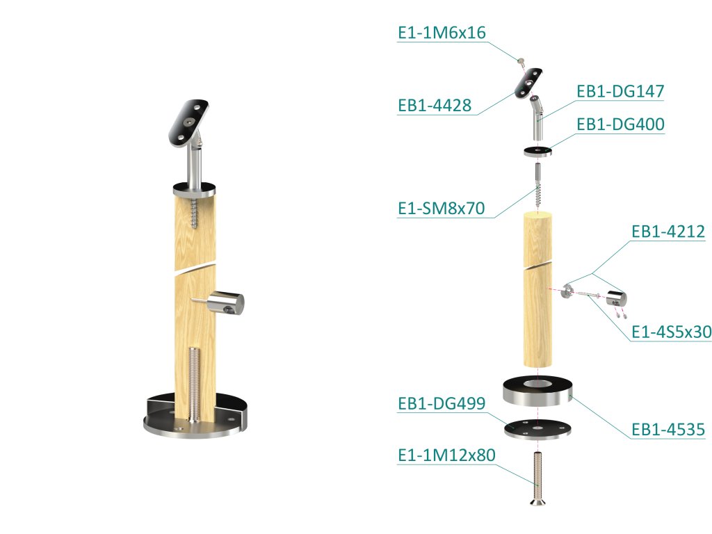 Drevený stĺp, vrchné kotvenie, 4-radový, priechodný
