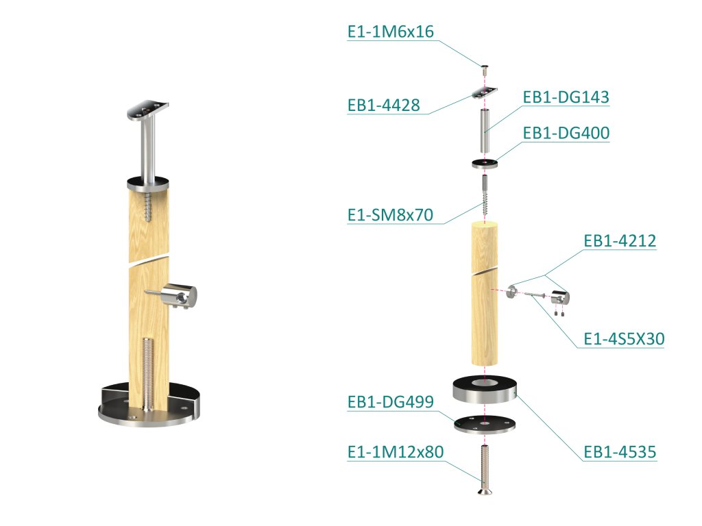 Drevený stĺp, vrchné kotvenie, 5-radový, priechodný