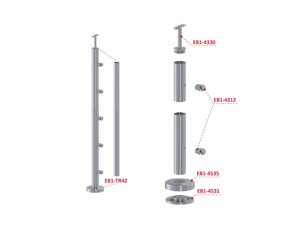 Nerezový stĺp, vrchné kotvenie, 5-radový, priechodný