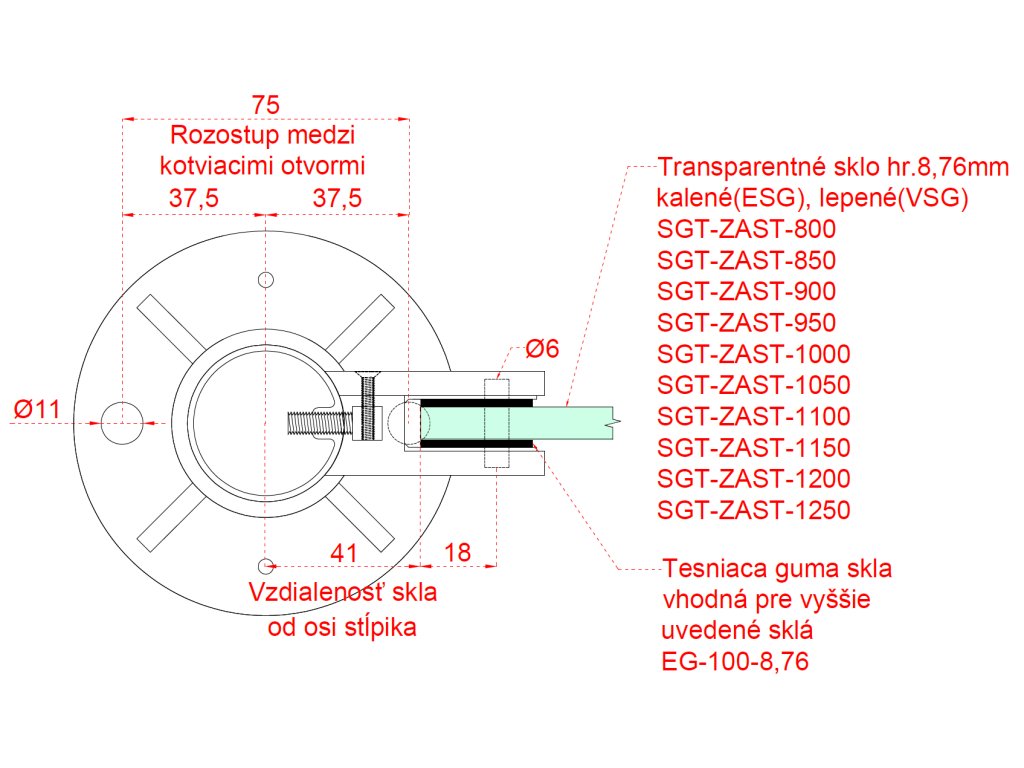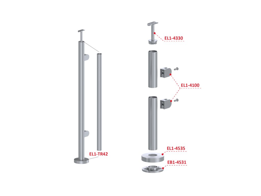 Nerezový stĺp, vrchné kotvenie, výplň: sklo, pravý