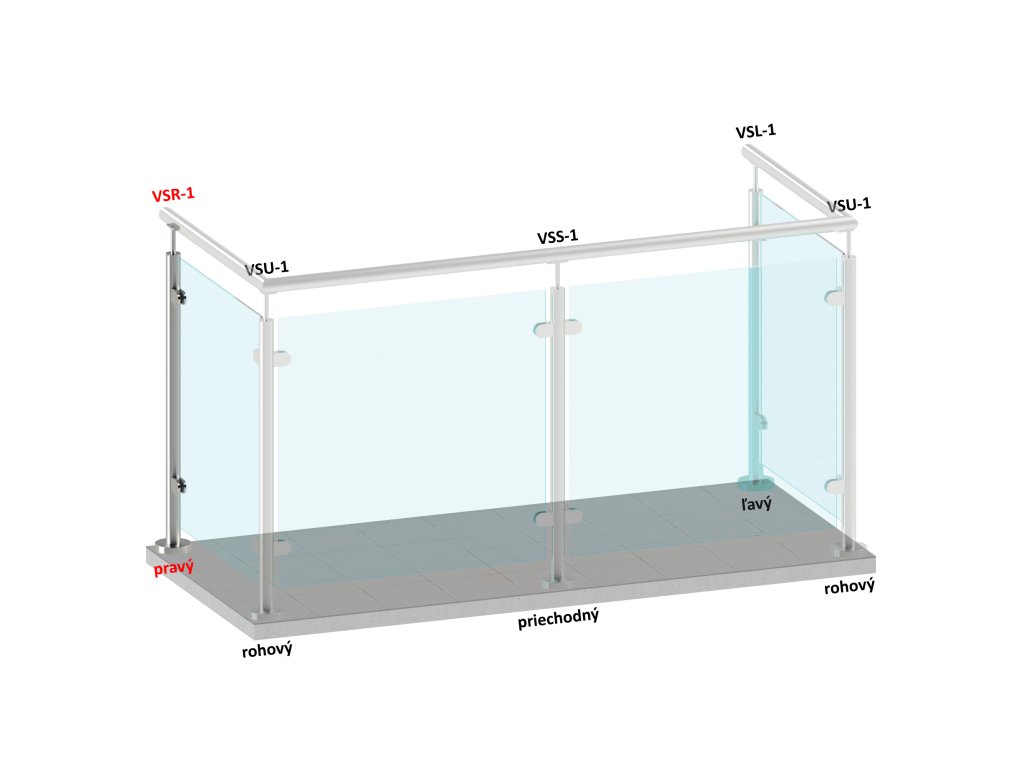 Nerezový stĺp, vrchné kotvenie, výplň: sklo, pravý