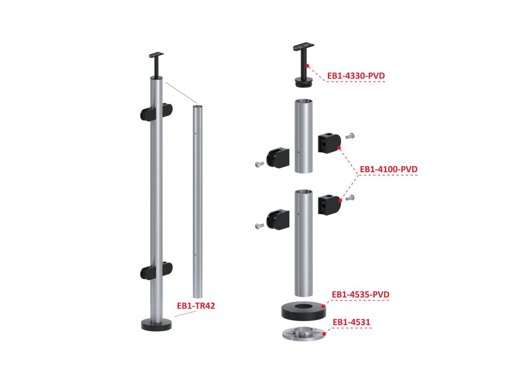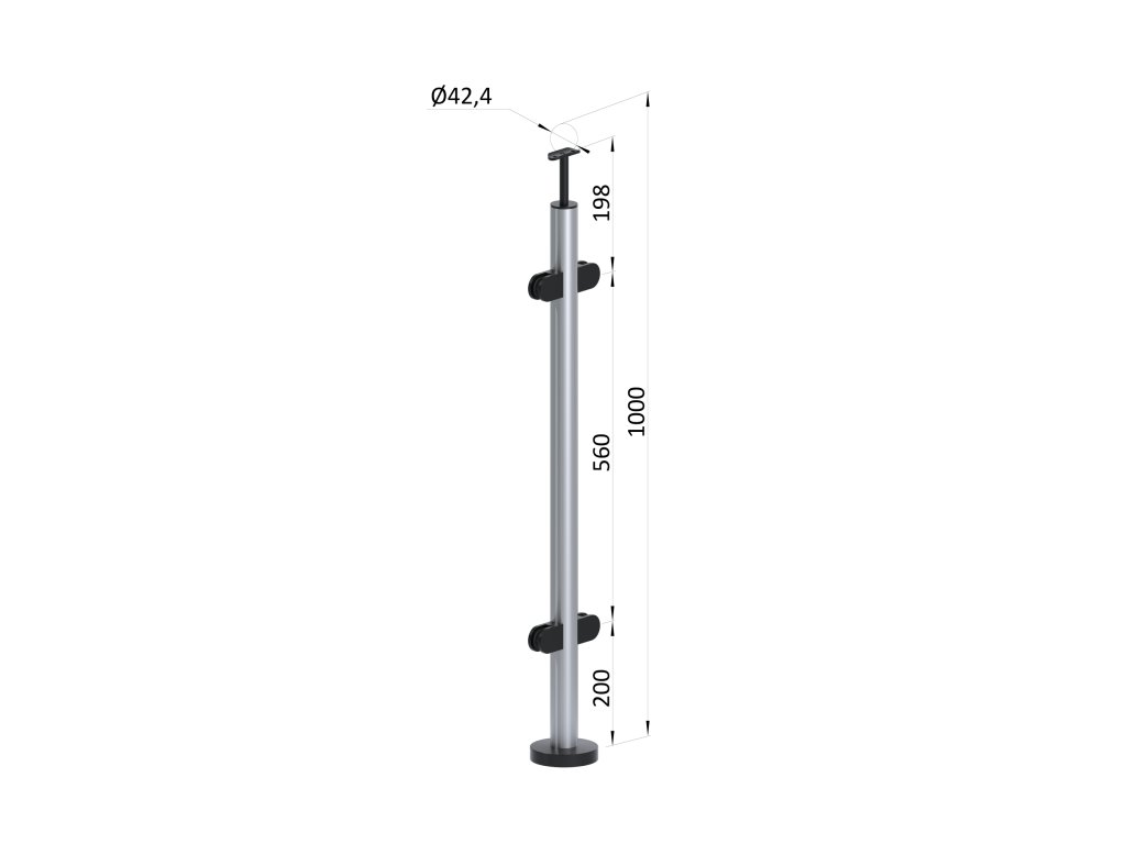 Nerezový stĺp, vrchné kotvenie, výplň: sklo, priechodný