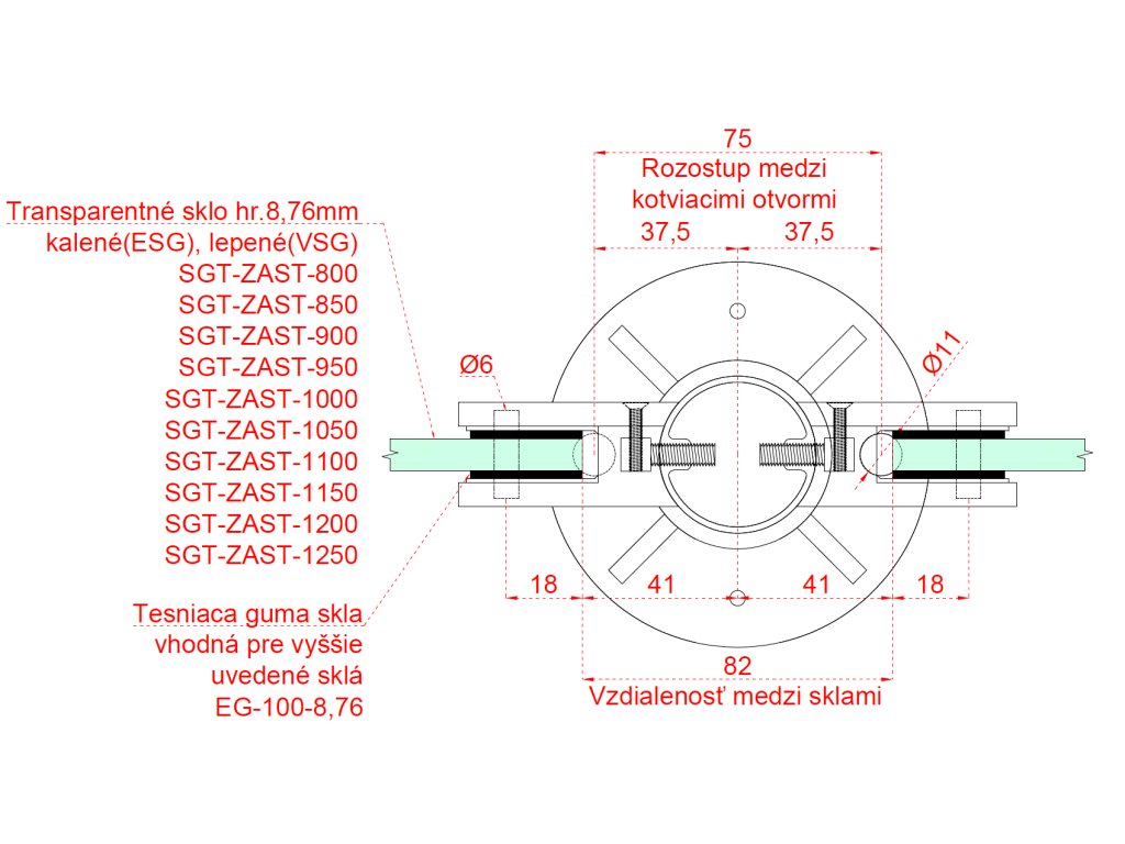 Nerezový stĺp, vrchné kotvenie, výplň: sklo, priechodný