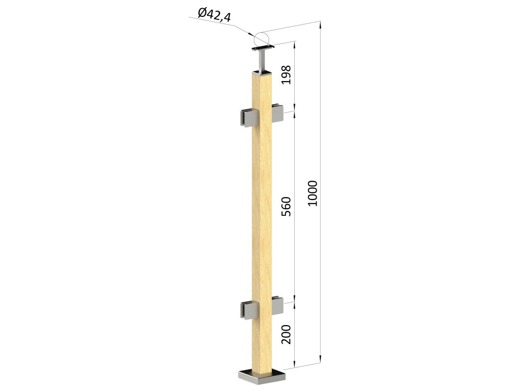 Drevený stĺp, vrchné kotvenie, výplň: sklo, priechodný