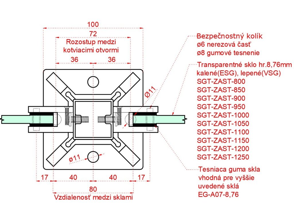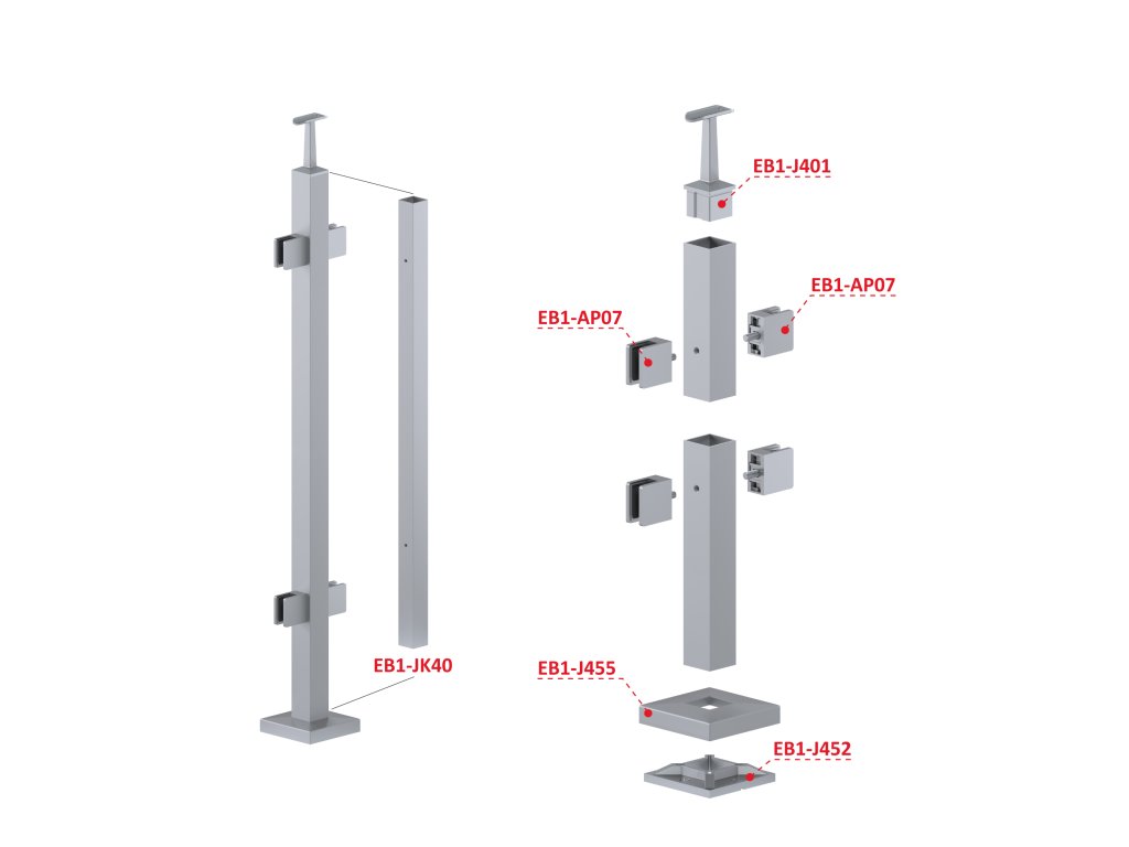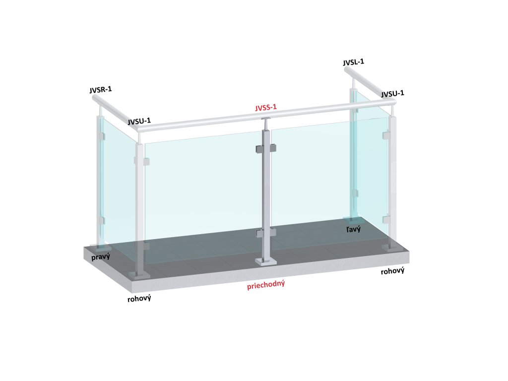 Nerezový stĺp, vrchné kotvenie, výplň: sklo, priechodný
