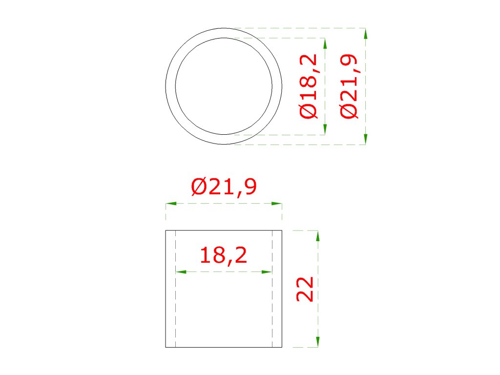 Prechod na vymedzenie vzdialenosti medzi stĺpom (plochý) a kotviacou platňou, ø 22x1.9mm /L:22mm, bez vnútornej skrutky, brúsená nerez K320 /AISI304