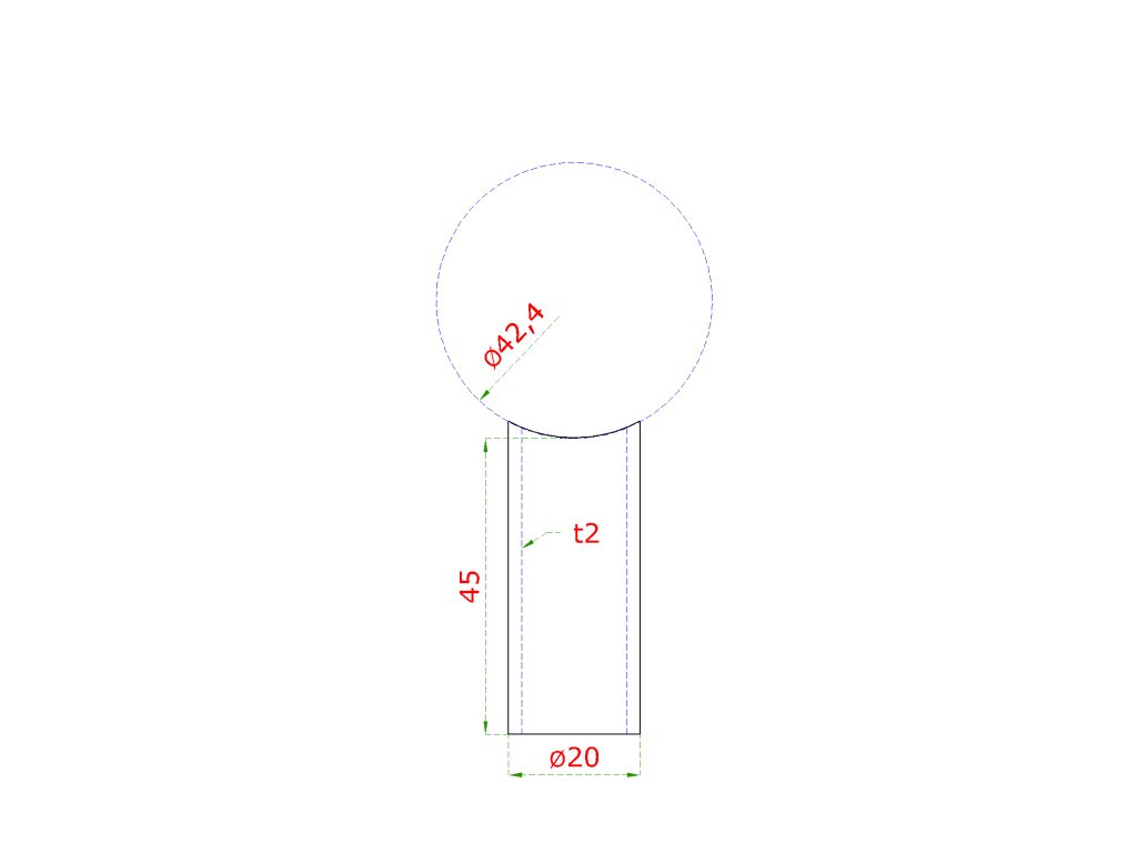 Prechod na vymedzenie vzdialenosti medzi stĺpom ø 42.4mm a kotviacou platňou, ø 20x2.0mm /L:45mm, bez vnútornej skrutky brúsená nerez K320 /AISI304, bal: 1ks
