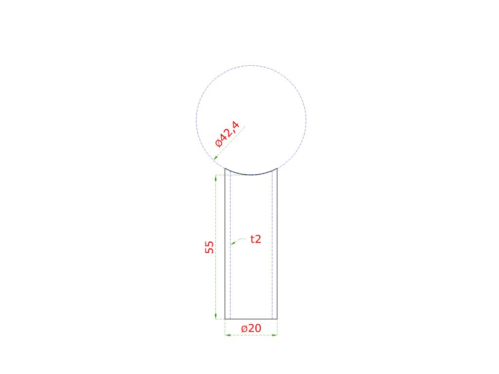 Prechod na vymedzenie vzdialenosti medzi stĺpom ø 42.4mm a kotviacou platňou, ø 20x2.0mm /L:55mm, bez vnútornej skrutky brúsená nerez K320 /AISI304, bal: 1ks