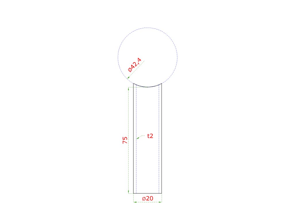 Prechod na vymedzenie vzdialenosti medzi stĺpom ø 42.4mm a kotviacou platňou, ø 20x2.0mm /L:75mm, bez vnútornej skrutky brúsená nerez K320 /AISI304, bal: 1ks