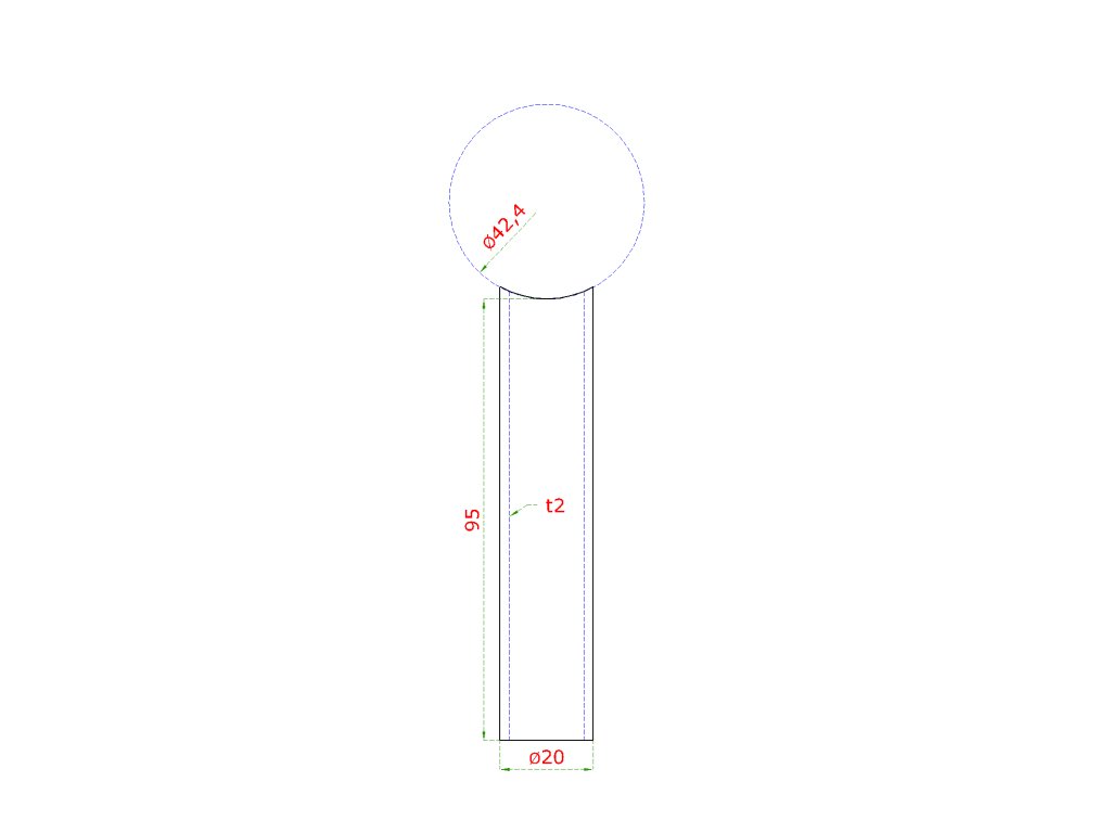 Prechod na vymedzenie vzdialenosti medzi stĺpom ø 42.4mm a kotviacou platňou, ø 20x2.0mm /L:95mm, bez vnútornej skrutky brúsená nerez K320 /AISI304, bal: 1ks
