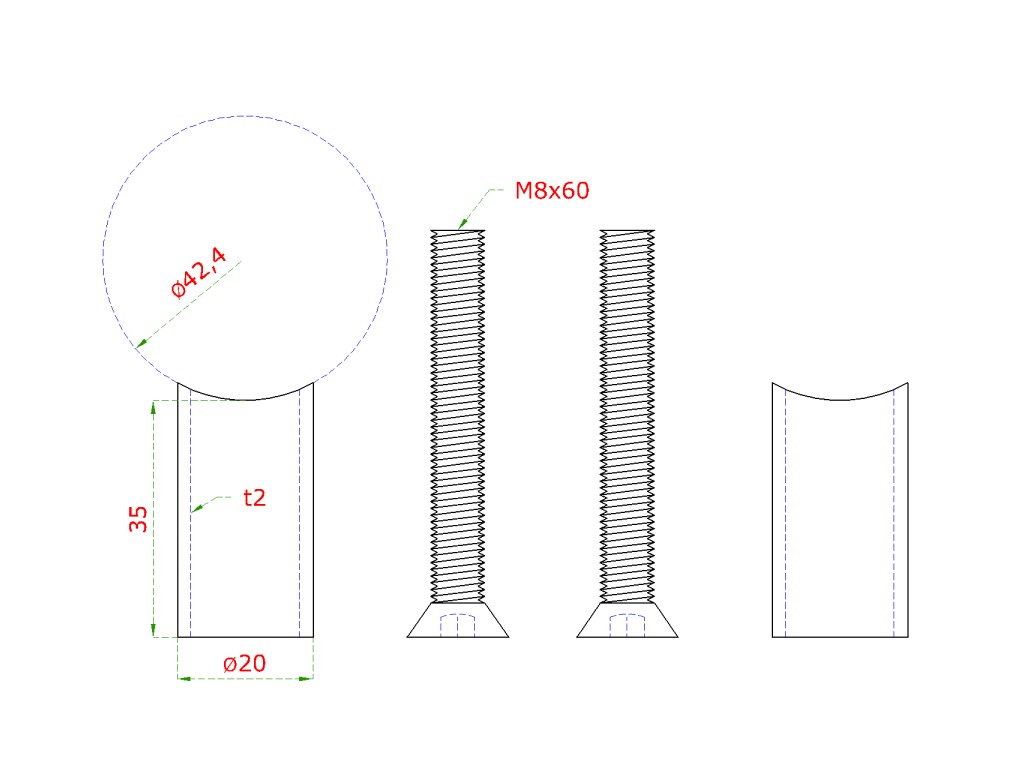 Prechod na vymedzenie vzdialenosti medzi stĺpom ø 42.4mm a kotviacou platňou, ø 20x2.0mm /L:35mm, vnút. skrutka: M8x60mm, brúsená nerez K320 /AISI304, bal: 2ks