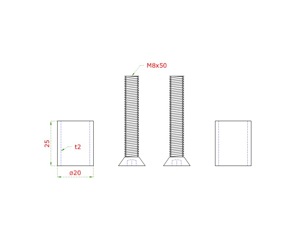 prechod na vymedzenie vzdialenosti medzi stĺpom (plochý) a kotviacou platňou, ø 20x2.0mm /L:25mm, vnút. skrutka: M8x50mm, brúsená nerez K320 /AISI304, bal: 2ks