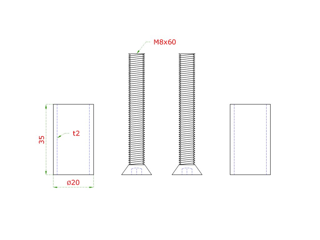 Prechod na vymedzenie vzdialenosti medzi stĺpom (plochý) a kotviacou platňou, ø 20x2.0mm /L:35mm, vnút. skrutka: M8x60mm, brúsená nerez K320 /AISI304, bal: 2ks