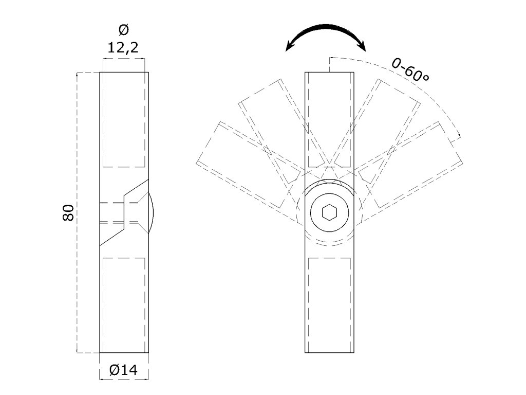 spoj nastaviteľný ø 12mm (0-60°) s kĺbom, brúsená nerez K320 /AISI316