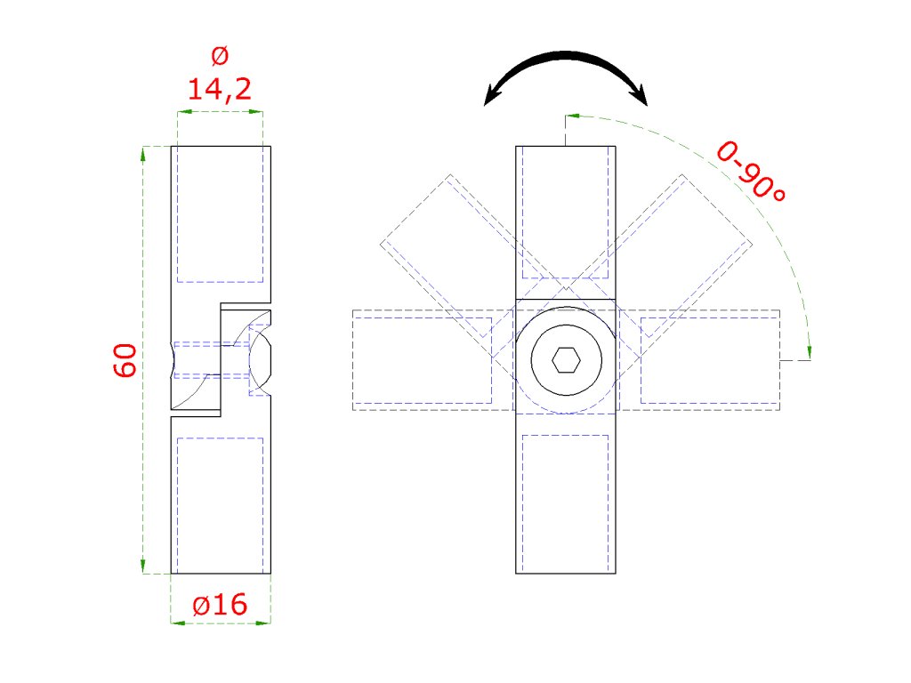 spoj nastaviteľný ø 14 mm (0-100°) s kĺbom, brúsená nerez K320 /AISI304