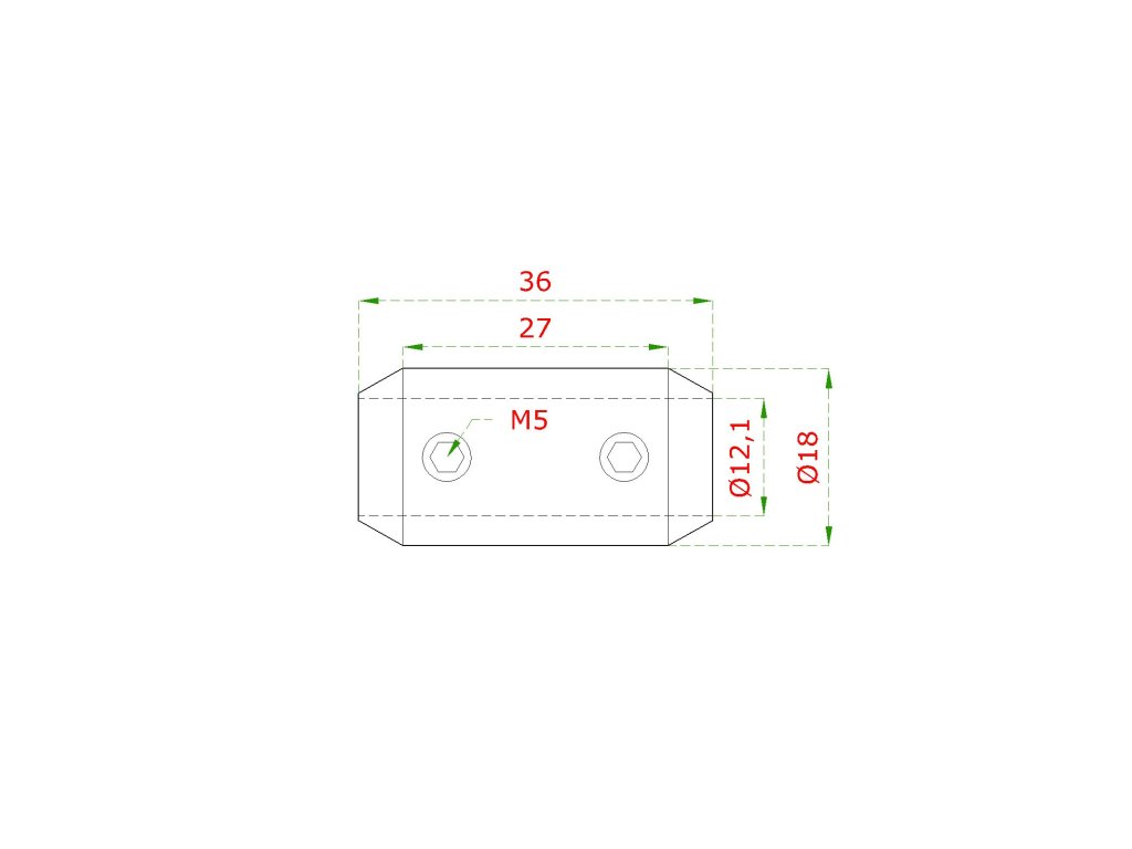 spoj priamy (18/36mm /M5) na trubku ø 12mm, brúsená nerez K320 /AISI304