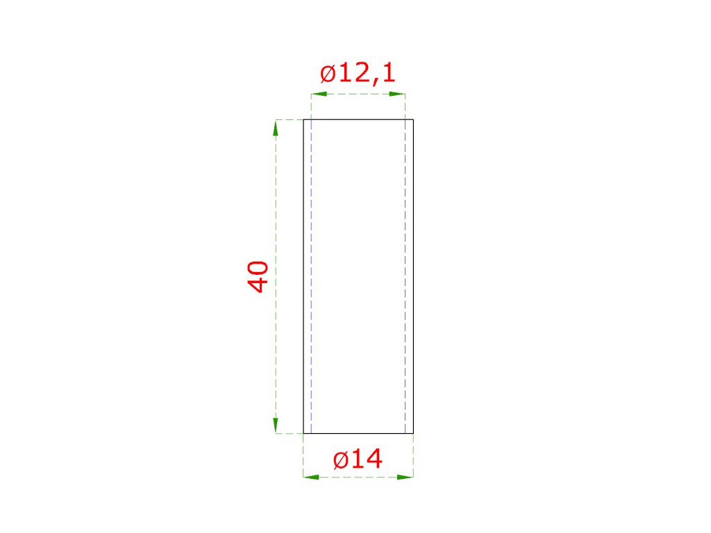 spoj priamy 40mm ø14mm, na trubku ø12mm dutý materiál, brúsená nerez K320 /AISI304