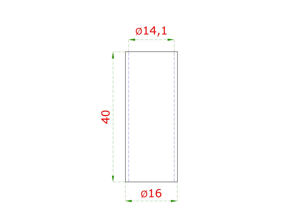 spoj priamy 40mm ø16mm, na trubku ø14mm dutý materiál, brúsená nerez K320 /AISI304