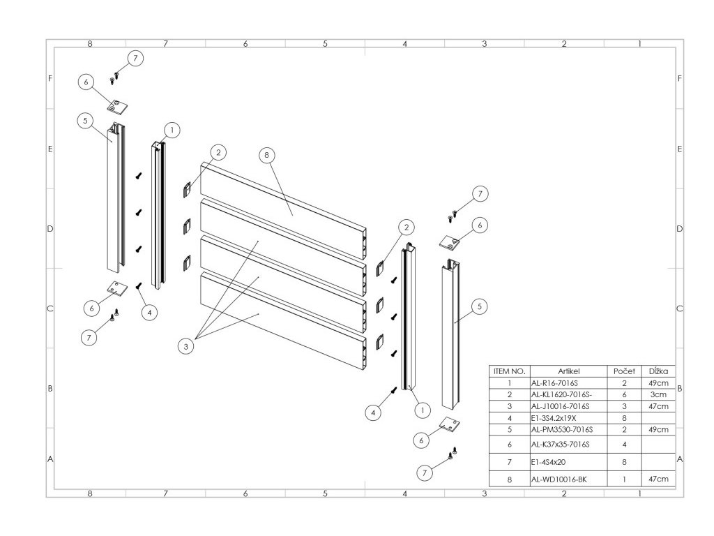 Vzorka plotového systému. Vzorka je v demontovanom stave.