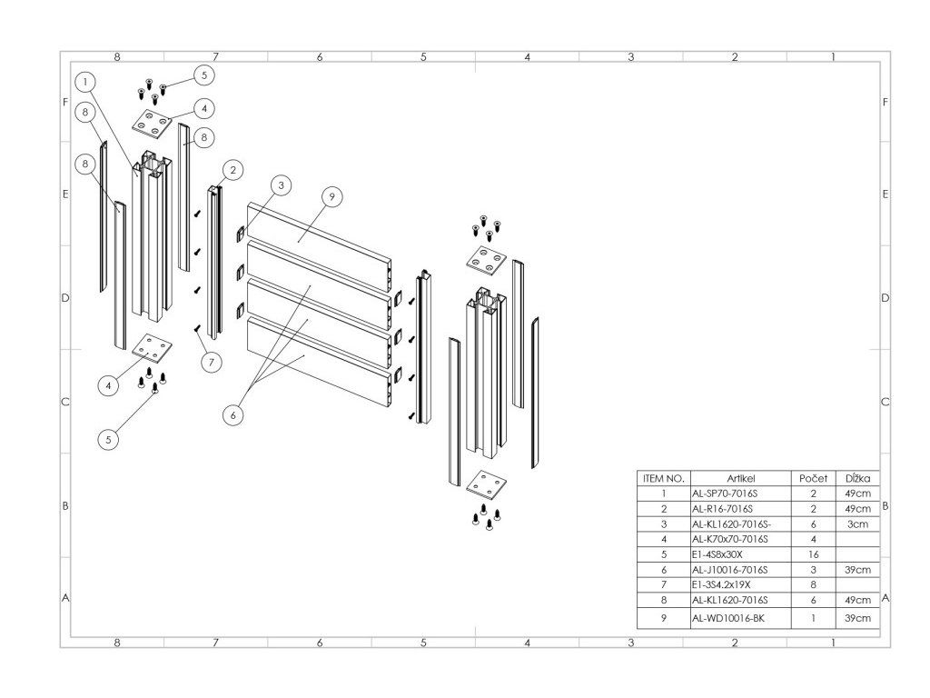 Vzorka plotového systému. Vzorka je v demontovanom stave.
