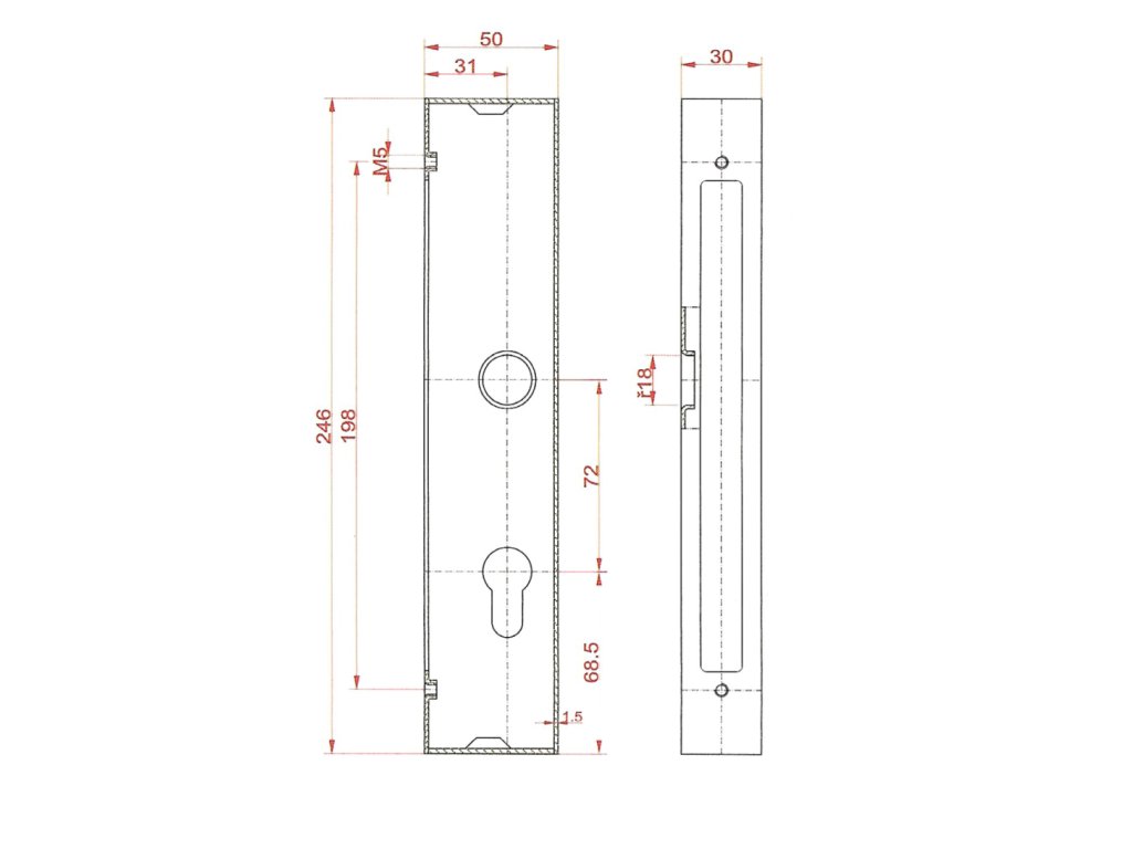 Kazeta 245x50x30mm,na profil 50x30mm so zámkom ZM72/50