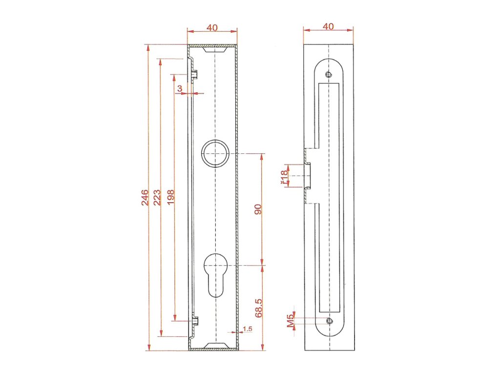 Kazeta 246x40x40mm,na profil 40x40mm so zámkom,rozteč 90mm