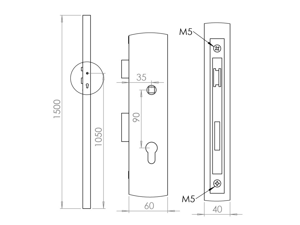 Profil 60 x 40 x 2 x 1500 mm so zámkom ZM90/50H, pravý