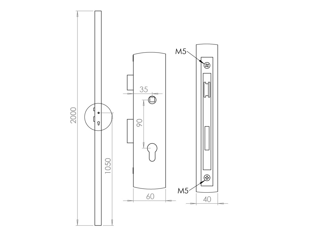 Profil 60 x 40 x 2 x 2000 mm so zámkom ZM90/50H, pravý