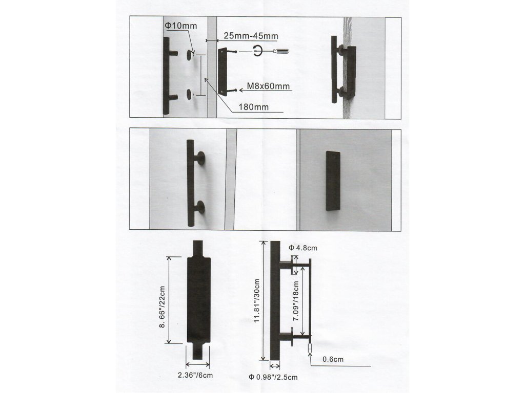 Kovové madlo pre SPD systém, priemer madla ø 25mm, dĺžka 300mm, rozteč 180mm, pozinkované, RAL9005 matná čierna