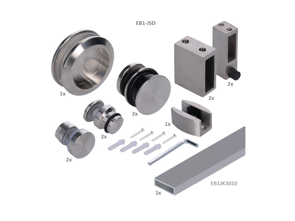 Tento závesný systém je vhodný na montáž sklenených dverí s hrúbkou 8 - 12 mm. Je vyrobený z kvalitnej nerezovej ocele, ktorá je odolná voči korózii a mechanickému poškodeniu. Set obsahuje všetky potrebné komponenty na montáž dverí, vrátane 2 metrov nerezového jaklu 30x10.