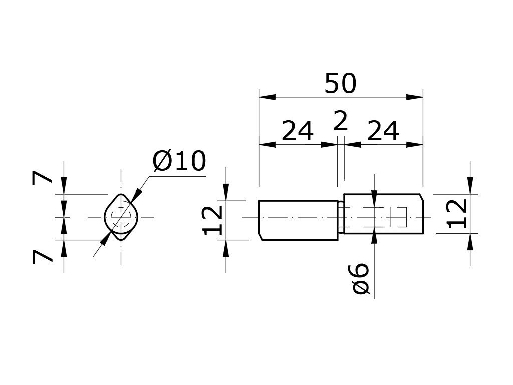 pánt dvojdielny 50x10mm, pozinkovaný tŕň