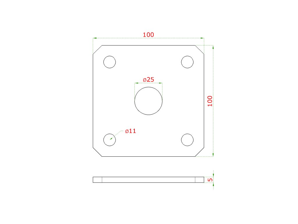 kotviaca platňa naváracia k nastavit. pántom (100x100x5mm) , otvor ø 25mm, brúsená nerez /AISI304