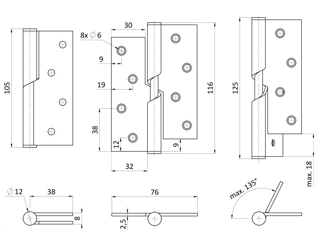 Pánty pridvihovacie (L), nosnosť 80 kg, brúsená AISI 304