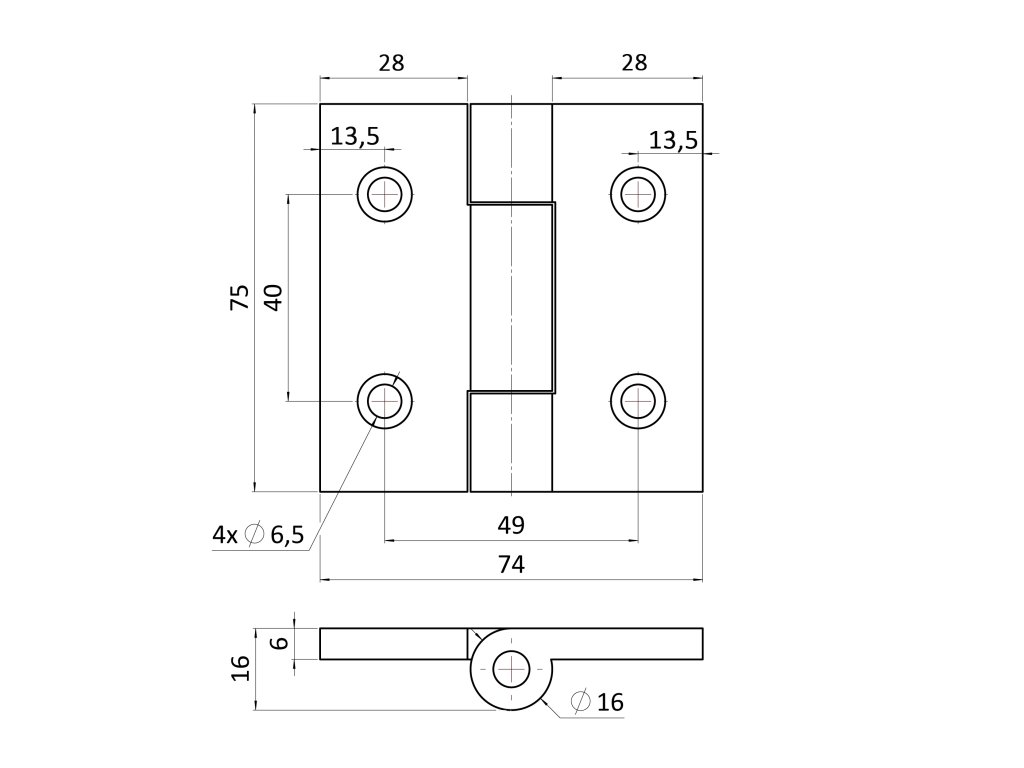 Záves na brány, na jokel, L = 75 mm, brúsená AISI 304