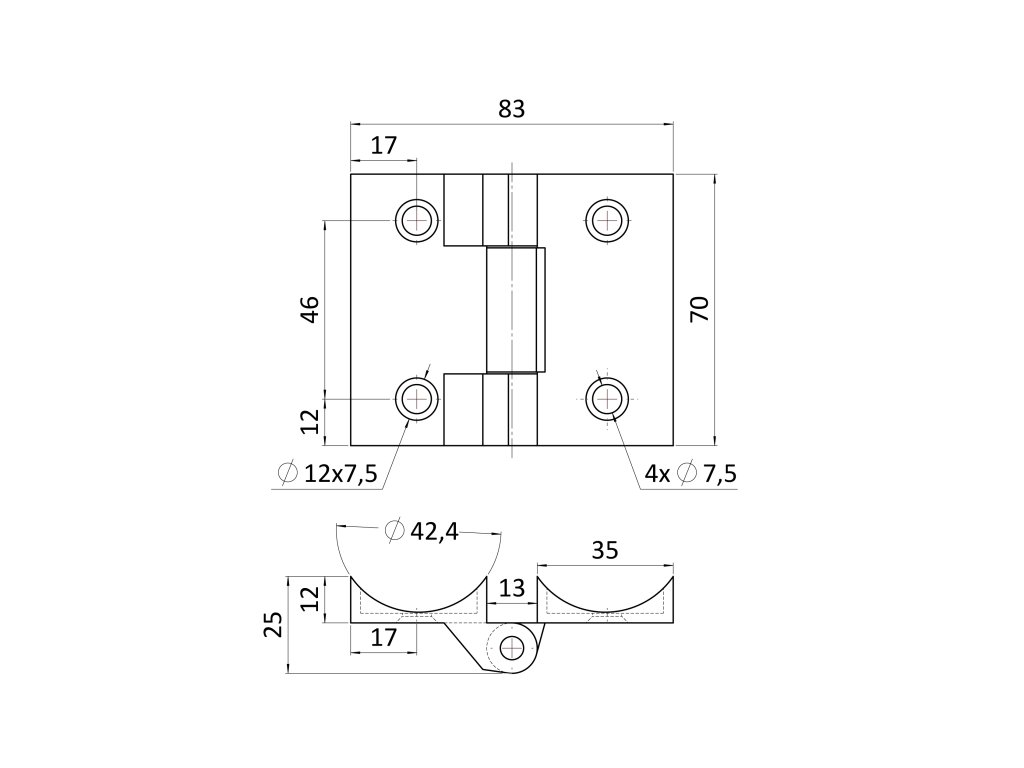 Záves na brány, trubka ø 42,4 mm, L = 70 mm, AISI 304