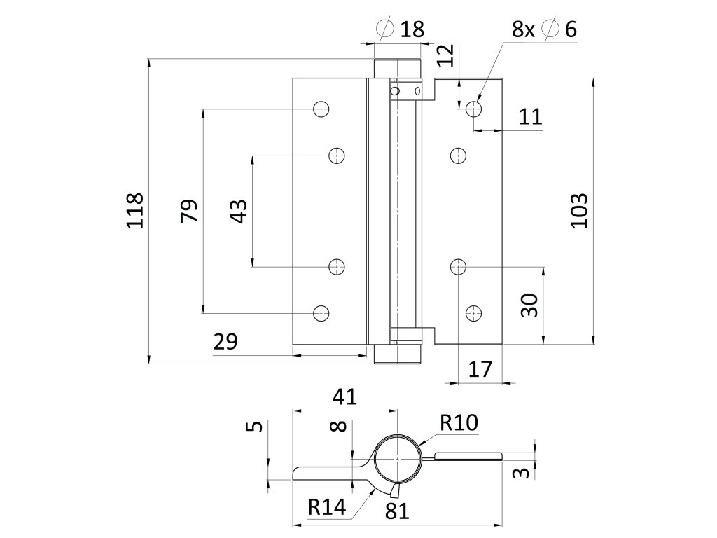 Predpätie pružiny a sila zatvárania je nastaviteľné. Doporučené maximálne zaťaženie: E1-P103-075: hmotnosť dverí 15kg, dĺžka krídla dverí 800mm E1-P103-100: hmotnosť dverí 20kg, dĺžka krídla dverí 800mm E1-P103-125: hmotnosť dverí 25kg, dĺžka krídla dverí 900mm E1-P103-150: hmotnosť dverí 30kg, dĺžka krídla dverí 900mm