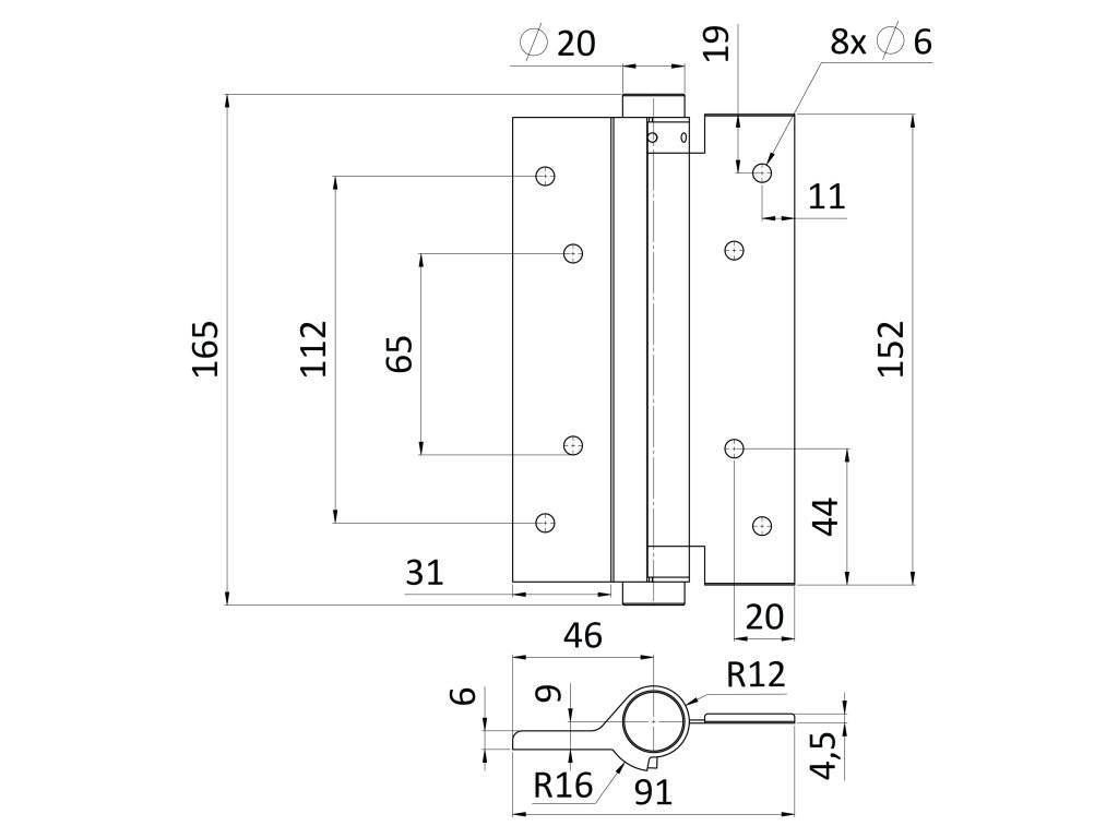 Predpätie pružiny a sila zatvárania je nastaviteľné. Doporučené maximálne zaťaženie: E1-P103-075: hmotnosť dverí 15kg, dĺžka krídla dverí 800mm E1-P103-100: hmotnosť dverí 20kg, dĺžka krídla dverí 800mm E1-P103-125: hmotnosť dverí 25kg, dĺžka krídla dverí 900mm E1-P103-150: hmotnosť dverí 30kg, dĺžka krídla dverí 900mm