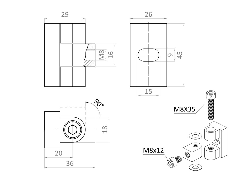 Nastaviteľný záves 0-90° k svorke, brúsená nerez AISI 304