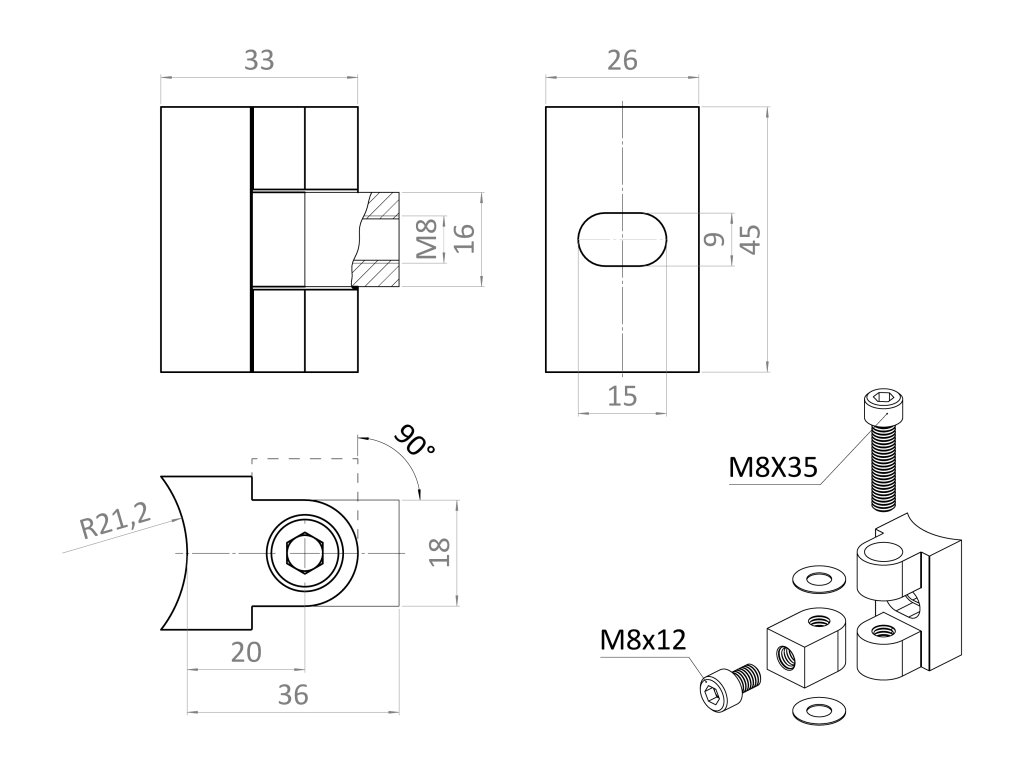 Nastaviteľný záves 0-90° na ø 42,4 mm, brúsená AISI 304
